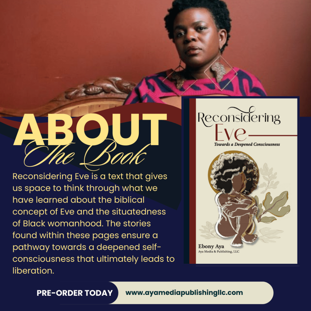 Reconsidering Eve: Towards a Deepened Consciousness is a text written by our founder, Ebony Aya. This text, developed over the last thirteen years, challenges readers to consider the meaning of the biblical story of Eve and how this narrative has influenced the ways that women, and particularly Black women, are treated in our society today.