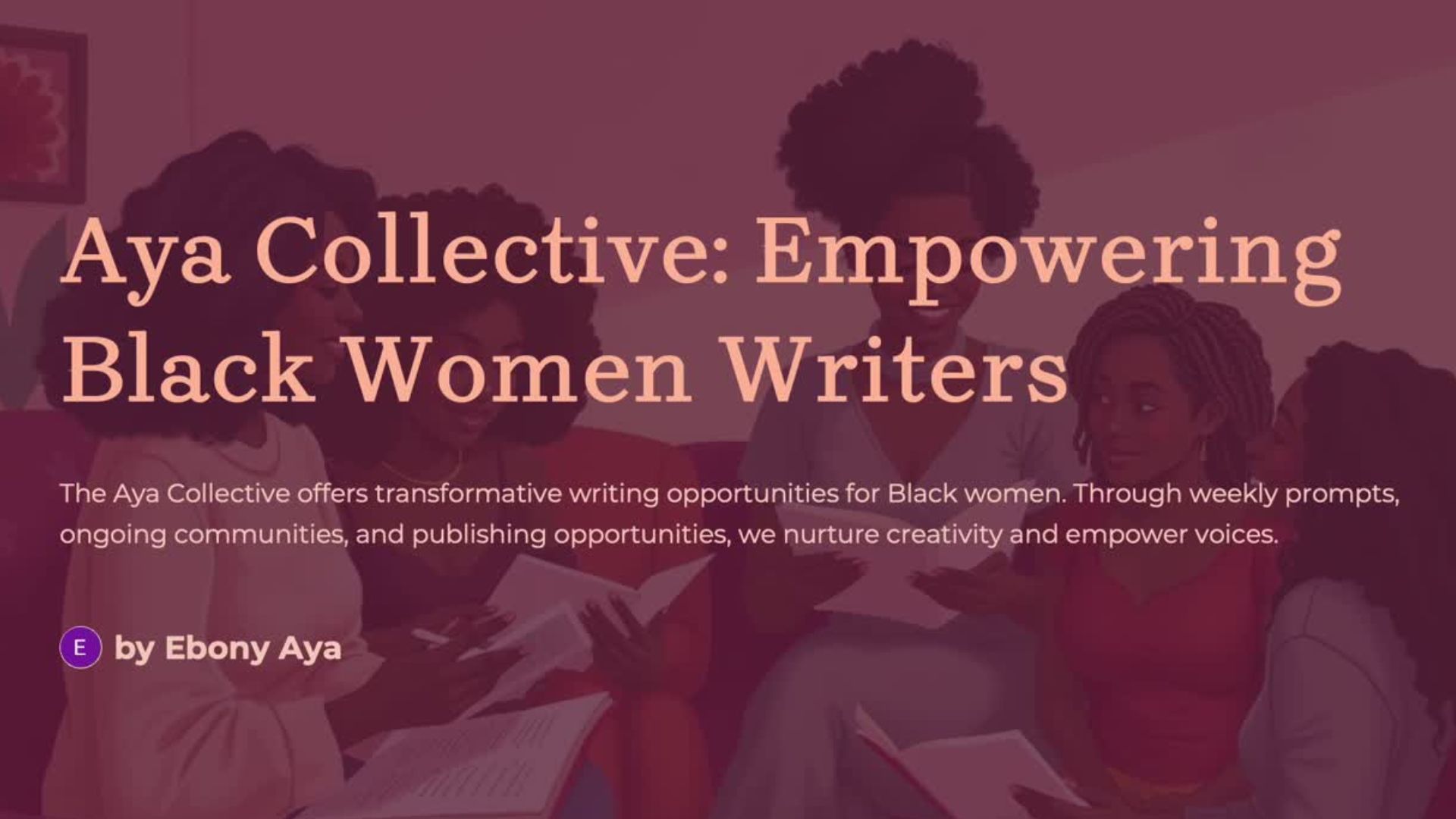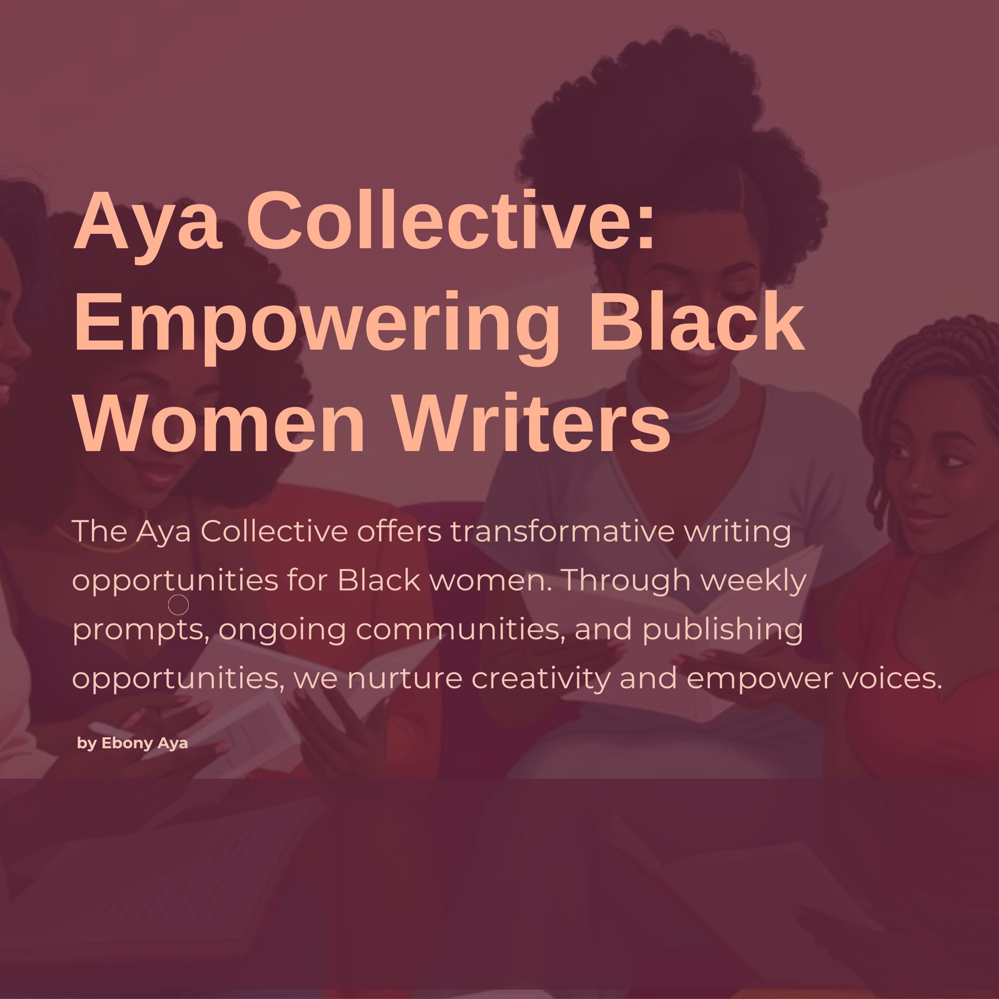 The Aya Collective offers transformative writing opportunities for Black women. Through weekly prompts, ongoing communities, and publishing opportunities, we nurture creativity and empower voices.